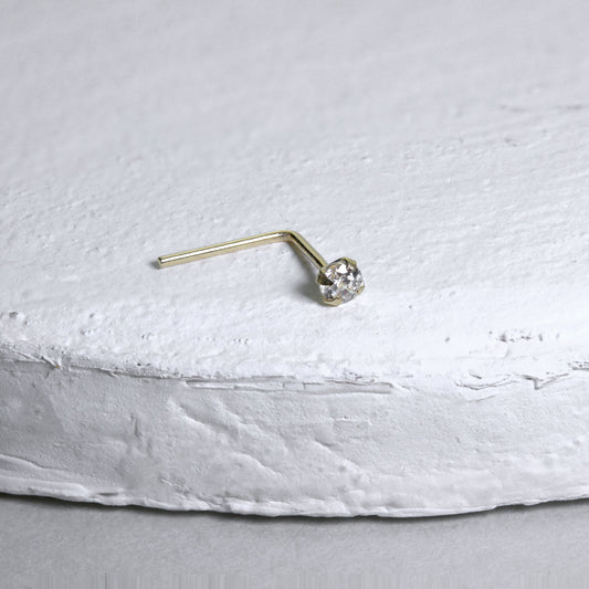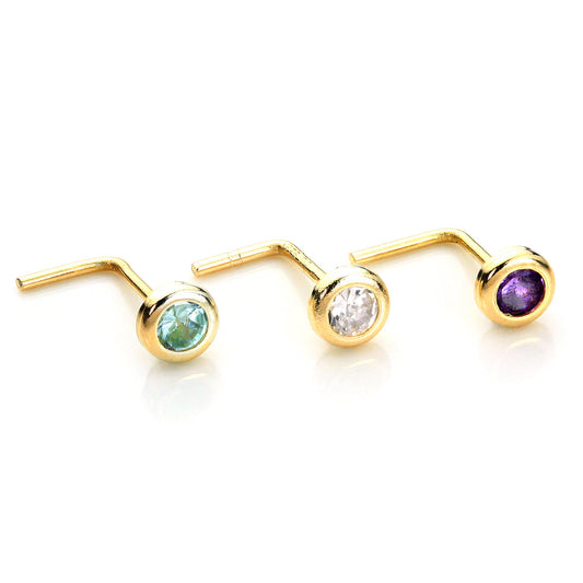 Regular price£0.009ct Yellow Gold L-Shaped 1.5mm Round CZ Crystal Nose Stud Pin