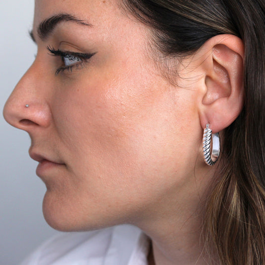 Regular price£0.00Sterling Silver Chunky Oval Line Creole Hoop Earrings