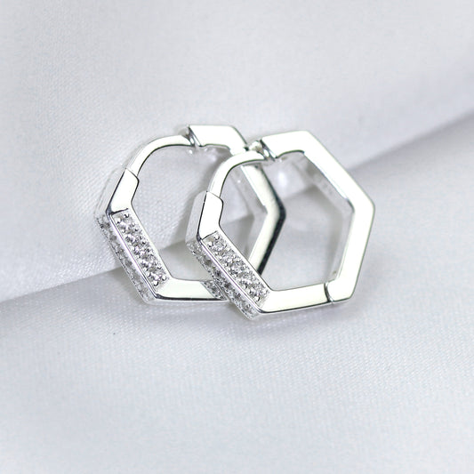 Regular price£0.00Sterling Silver CZ Encrusted 14mm Pentagon Huggie Hoop Earrings