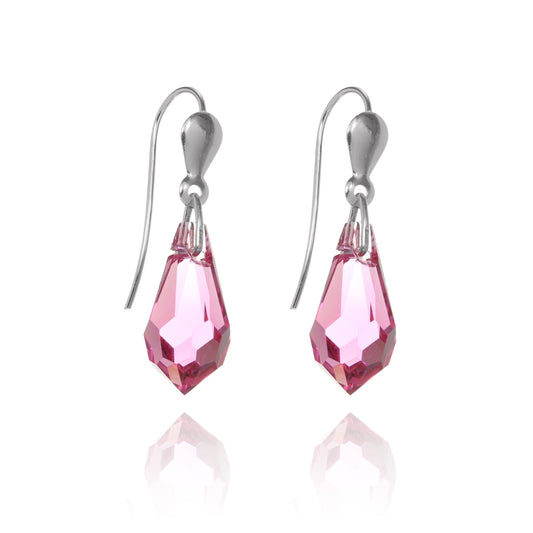 Sterling Silver & Crystal Drop Wire Earrings - 6 Colours