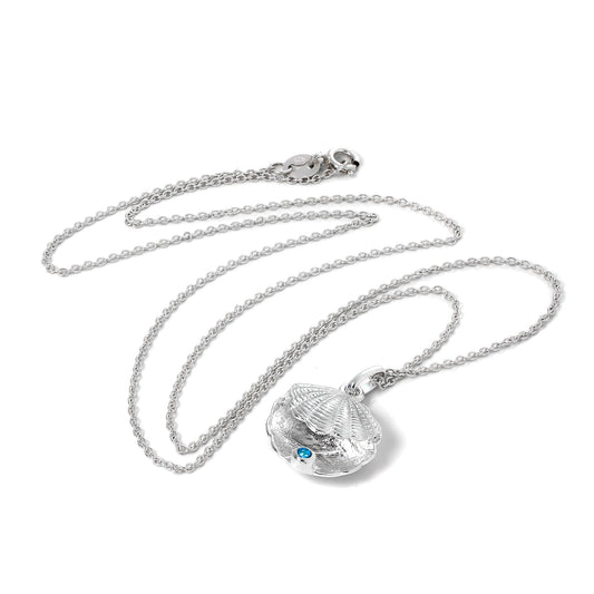 Regular price£0.00Sterling Silver Oyster Shell with CZ Crystal Blue Zircon Birthstone Necklace