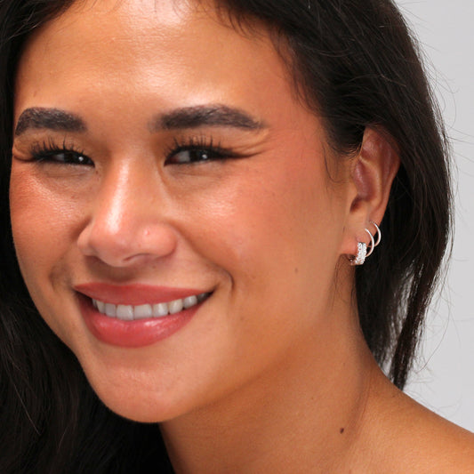 Regular price£0.00Sterling Silver CZ Triple Interlocking Huggie Hoop Earrings