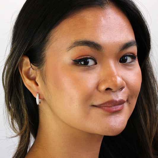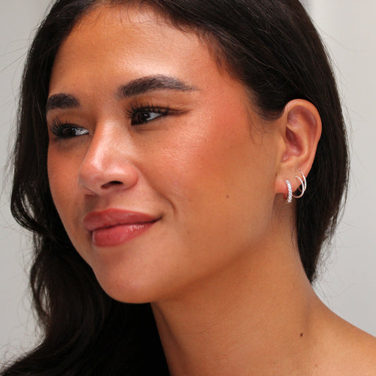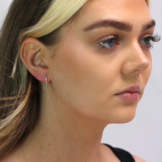 Small Sterling Silver CZ Double Channel Huggie Hoop Earrings