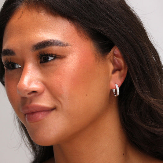 Regular price£0.00Sterling Silver CZ Pave Huggie 19mm Hoop Earrings