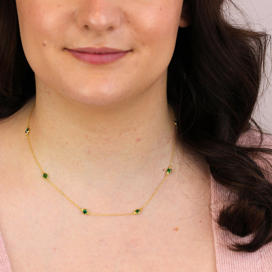Regular price£0.00Gold Plated Sterling Silver Multi Emerald CZ Necklace 16+2 Inches