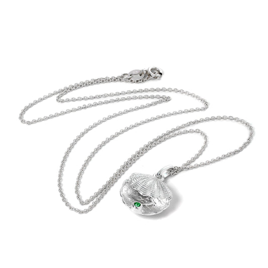 Regular price£0.00Sterling Silver Oyster Shell with CZ Crystal Emerald Birthstone Necklace