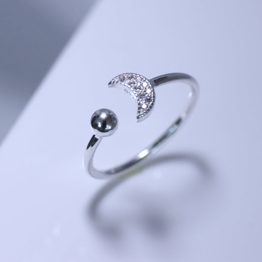 Sterling Silver & CZ Crescent Moon Adjustable Ring
