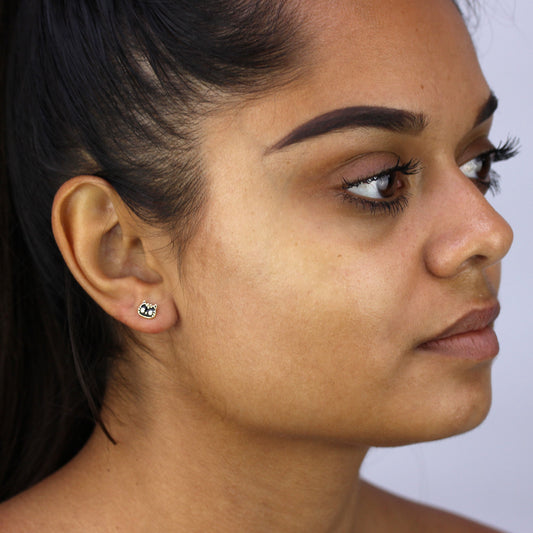 Regular price£15.009ct Gold Black Enamel & Clear CZ Crystal Cat Face Stud Earrings