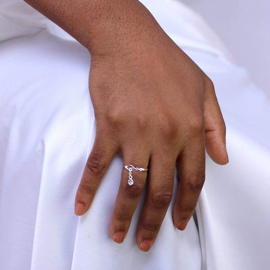Regular price£0.00Sterling Silver Teardrop Clear CZ Chain Drop Dangle Adjustable Ring