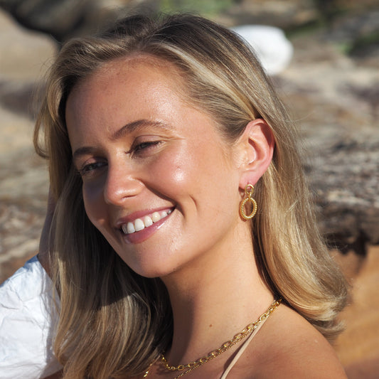 Regular price£0.00Gold Plated Sterling Silver Double Oval Twist Rope Stud Drop Dangle Earrings