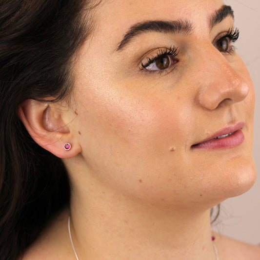 9ct Gold & 2.5mm Sapphire Ruby & Clear CZ Crystal Stud Earrings